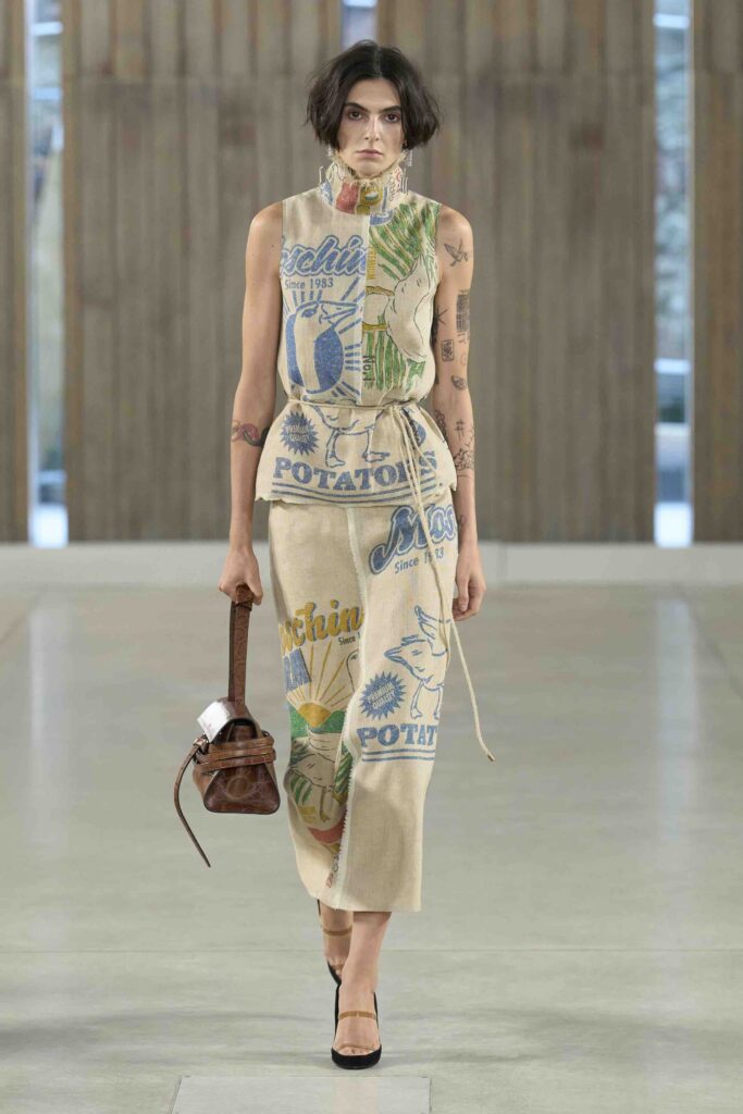 La collezione Primavera Estate 2026 ha riproposto l’arte dell’ironia firmata Moschino: materiali reinterpretati in chiave pop, volumi esagerati, riferimenti artistici traslati in abiti. Una passerella che ha ricordato quanto il brand sia capace di trasformare la moda in racconto immediato.