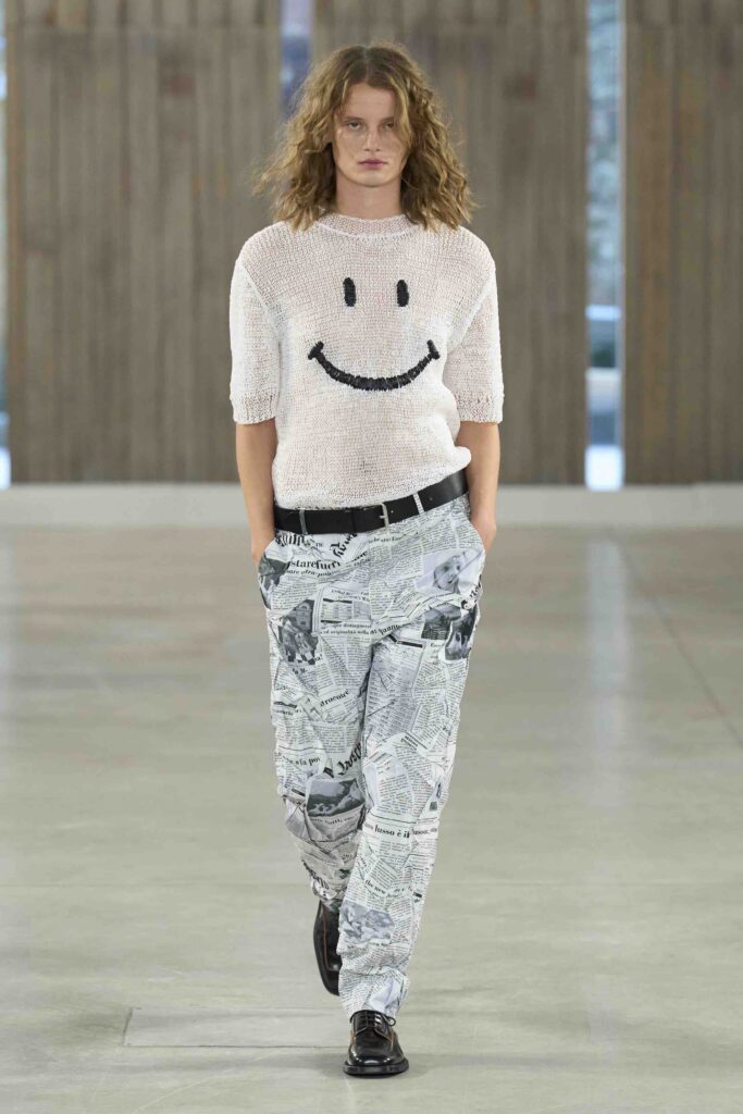 Mascia ha trasformato la passerella in un laboratorio di pattern e colori, costruendo una narrativa grafica su tessuti leggeri e setosi. Ogni look diventa un quadro dinamico, dove la stampa diventa protagonista autonoma del guardaroba.